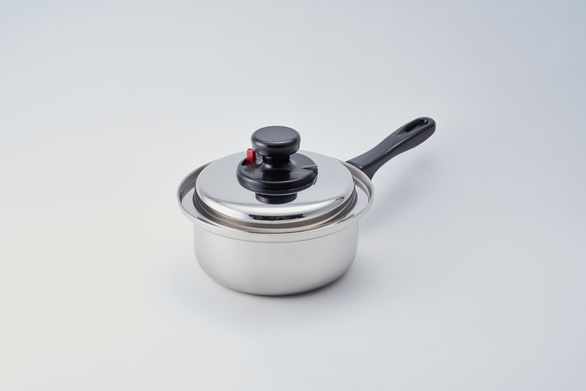 蓋のツマミに赤いコントローラーがついています。このレバー「開く」「閉じる」にスライドすることで、蒸気を抜いたり閉じ込めたり、料理に合わせて使い分けできます。